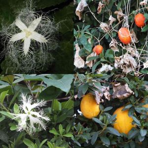 お散歩途中。「カラスウリ」「キカラスウリ」が色付いていました。 パチリ・パチリ 左側は夏にpicしたお花です。 この実がなっていた生垣の土地、マンション建築の縦看板が。 😲 今年は見ることができないようです。😆🤐