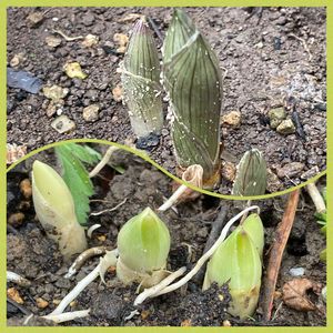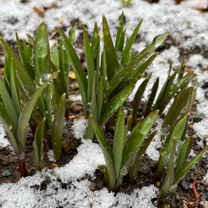我が家の庭の バイモ 今朝の雪の中 顔を出したばかりの貝母も寒そうです お昼頃は雨☂️になりましたが 3時過ぎからまた雪❄️になりました 都市部は雪に弱いです😓 お互いに気をつけて過ごしましょうね〜❣️