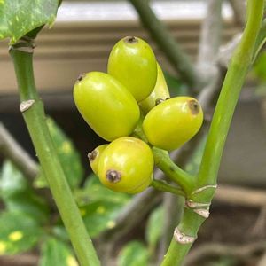 我が家の庭の アオキ シャインマスカットのような美味しそうな色です これから赤くなるのかな???😓