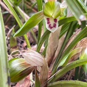 我が家の庭の シュンラン(ラン科シュンラン属) 目立たないけど毎年咲いてくれます 春ですねー💕