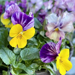 2021年、寒いけど快晴で穏やかな お正月です。コロナ禍が嘘のように 感じます。 でも医療従事者の皆様は 昨年から尽力されて今もなお しんどい思いをされていますね。 本当に感謝しかありません。 どうかご自身の健康にも 留意してくださいね。 昨年末に5ポット440円の ビオラ&パンジーの寄せ植えをしました。 最近は霜がおりて凍っているので アジサイも他の花も心配です😢