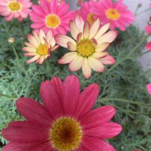 PWマーガレット ローリー 昨年3月にお迎えした見切り品からスタートした子 知識不足で太陽サンサン☀の場所に置いていたにも関わらず無事夏越ししてくれて頑張っています🌱 花茎が短めなのかな? ぎゅっと詰まって咲いてくれるので私のようなマーガレット初心者でも満開感が味わえる子のような気がします スーパーの店頭に並んでいたときは気の毒な姿だったけどここまで大きくなってくれてお世話係は感涙です😆