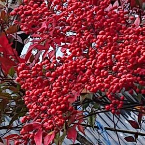 南天 ちゃんです。 紅葉と、実が 沢山 つきました。 例年に、無い 実 つきかも。