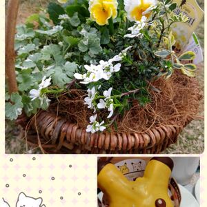 かわいいかごにエッグタルトの寄せ植えを作りました🐣 かわいい~🥰 明日から寒いので今のうちにやっとかなきゃ😆👍️❤️ 今日はインフルエンザの予防接種に子どもと行ってきました💉 大の注射嫌いの親子です😅 ご褒美がないと悲しくてやってられない❗️ってご機嫌斜めの息子に、ピカチュウのドーナツを買わされました😁 お店でドーナツを食べてジュース飲んだらすっかり機嫌も良くなりました~🥳 ピカチュウドーナツ、美味しかったそうですよ🍩