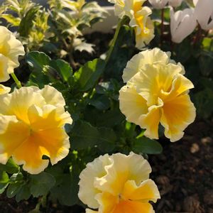 2022.11.11 * エッグタルト𖥧𖧧 ˒˒. おひとりさま植え♡ 𓂃𓂂𖡼.𖤣𖥧𓈒◌܀𖥧𖧧 ˒˒. フリフリ優しいレモン色と黄色のグラデーション♡ 春にもっこもこ咲きが 今から楽しみ♡ 去年まで淡いピンクや紫ばかり 選んでたパンジーとビオラ 今年はイエローも買ってみたよ♡ 美味しそうなネーム って思うのは私だけ?(⁎˃艸˂⁎)ププ 𖤣𖤥𖠿𖤣𖤥ෆ。