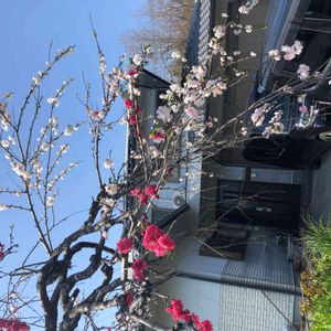 気持ちの良い春の日に✨ 小さな庭の 桃の花咲き始めました🌸