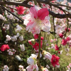 今日の花: 2018年3月末のpic🍑 白、紅色、MIXの花色が1本の木に咲く 源平桃🍑 たくさんの方が撮影してました📸