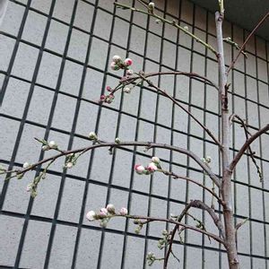 早大通りの枝垂れ桃 咲き始めました❣️ 一本の木から咲き分けして可愛い💕