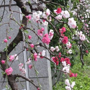 3/21(土)④ 仕事帰りに2ヶ所観に行きました。 源平枝垂れ桃。 一本の木に紅白ピンク絞りが咲いて見応えあります。 1ヶ所は満開で、もう1ヶ所はまだ蕾でした。 来週また観に行きます‼
