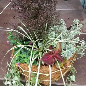 初めてハンギングを作ってみました❗️ グリーン中心です🖐️ 横はもっとコンモリするのを選べば良かった😥