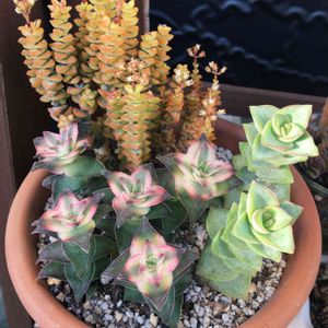 寒い中、星系のクラッスラさんたちを寄せ植えにしました(*^^*) 足元にはミルキーウェイを入れてみました。たくさん増えるといいな❤