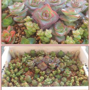 クラッスラ「南十字星」「星の王子」「ルペストリス」「寿限無」 星丼。 水やり多めにするために、星系をひとまとめにしています。