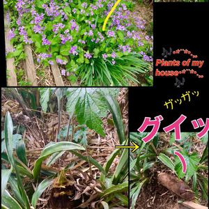 タケノコの成長は待ってくれない(..•˘ ̯˘•..) 狭い竹藪ゆえ中々難儀な時もしょっちゅう ⬆️もしムラサキハナナの中にあったのがわかるのはそこから先っちょが出て来た時、つまりもう大き過ぎちゃう。 覗いたら・・いたーぁ😆 ⬇️オモト達の中からニョキ どーしよ オモト犠牲にしてこのままザクッと行っちゃおうか🙄 オモト一本抜いてザクッと。 タケノコ抜いた穴🕳に戻して終わり🤣