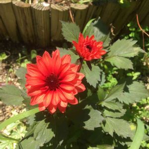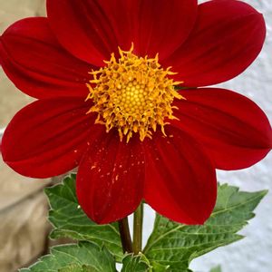 我が家のダリア❣️ 真っ赤に燃える〜ようなダリア❤️ 小さな体をいっぱい広げて、日向ぼっこしてるところをパチリ📸 蜂🐝が来て、花粉をまき散らかされても動じず。。。 凛とした姿に、なぜか黄色いひまわり🌻の姿を連想してしまいました😅