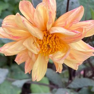 おはようございます GSの今日のお花ダリア🧡 優しそうな色のお花です❣️ 雨続きで 疲れましたねー😅 ホットする色のお花に癒されて今日も元気に、お過ごしください😊🎶 被災された皆様 お気を付けて頑張ってくださいね🙏