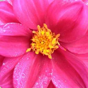 赤紫色だけど お日様☀とカメラ📷のせいで ちょっと違う ショッキングピンクになってしまう❗ しべが覗くダリア🌼─〔11月17日撮影〕 ※お昼は、サゴシの塩焼きです😋 ※22日の倶楽部活動のタグは、2018寄り添って─