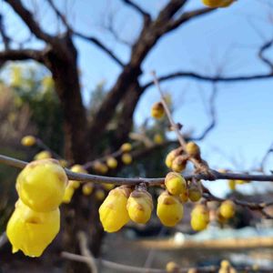 散歩道にて ロウバイ まだ開く前の可愛いつぽみ兄妹…なんとなくほっこり☺️