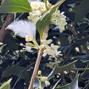 🏷️今日のお花 一昨年伊勢神宮で花を咲かせていたときに雨上がりに出会ったヒイラギが思い出深く残っています☺️✨ 雄花と雌花の区別がわからないのですが、わかる方教えてくださいね🙏検索して調べてみても雌花はなかなかお目にかからないそうですね。 ①②2022.11.21撮影 ③昨日牧野記念庭園で出会ったばかりの鋸葉がないヒトツバヒイラギ🌱