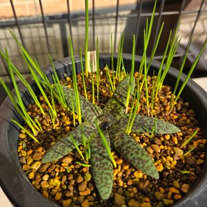 ラケナリアプシラ 昨日ゲットしてきたうちの1つ これも珍奇な雰囲気で以前から気になってたやつ(´・∀・`)🌱 葉っぱは🐆柄です。 間もなく花が咲きます。
