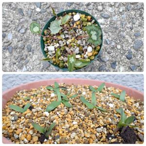 毎月3日は実生の日🎵 上:原種シクラメン ミラビレタイルバーンアンとして入手した種だけど違うと思う…ただのヘデリフォリウムってことにしよ 下:ラケナリア・プシラ すごく歩留まりが良い。23個蒔いて21個発芽し今も18本あります。 どちらも2017.11月種蒔き2018.1月発芽
