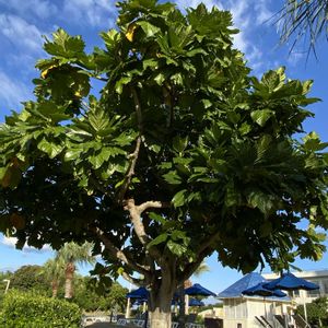 ♡「 パンノキ 」「ハイビスカス」♡ 姉妹で沖縄旅行に来ました🌺🌴 ♡⃛ 1枚目、2枚目 ホテル内には大きな「パンノキ」が ツヤツヤ葉っぱが綺麗です☘ ̖́- ♡⃛ 3枚目、4枚目 ハイビスカスも地植えで冬を 越せる暖かさなんですね🌺
