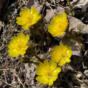 福寿草 (ふくじゅそう) キンポウゲ科 フクジュソウ属 気温20度近くに上がった晴天の日 ✨福寿草たちが太陽に向かって光り輝いてました☀️✨ 光や温度に非常に敏感で、昼間でも日がさえぎられると1~2分で花がしぼみ、再び日があたるといつの間にか花が開く。 寒い時期に咲くので、花びらを開閉することで花の中の温度を下げないようにしているらしい。 四阿屋山福寿草園地にて 3/12