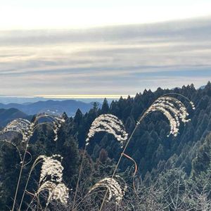 光る海とススキ ちょうど雲の合間から太陽の光が海に降り注いでいました。 小仏城山にて
