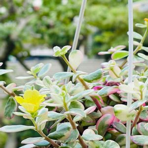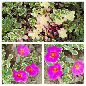 本日二投稿目です🤲我が家の斑入り❣️ 🍃涼しげな方が続きます、ピンク色少し 🏷「日曜ビタミンカラー」に参加します 🏷「錦の日」に参加させて下さい🤲 斑入りポーチュラカ華ミステリアかしら⁉️ ピンクじゃない👀黄色い花💛でした❣️ スベリヒユ科 スベリヒユ属 南北アメリカを中心に熱帯〜温帯に分布