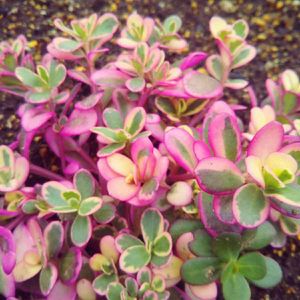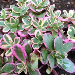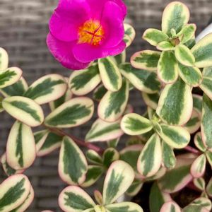 ↗️ ご近所さんより頂きました『花月かと思ったけど違うみたい』と言っていただきました。多肉の先輩に伺ったら『マネーメーカー』かも⁉️とのご回答。検索したらそうみたい💖紅葉もするみたいで嬉しい😆 ↙️ ホームセンターに行ったら可愛い子が!フォローさせていただいてる方の投稿で知った『斑入りポーチュラカ』がおりまして、迷わずお迎えしました!両方とも秋にはおんなじような葉っぱになるかしら💖 ピンクとライムグリーンの組み合わせって可愛い💕