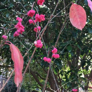 これなんでしょう❓ 種が飛んだあとみたいです。 この時期にピンクの実❓と近寄ってみました。