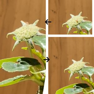 あっ!ドルステニアさんの種どうなった⁉️と見に行くと……。 「ここだよ〜❗」と言わんばかりに葉っぱの上に乗ってましたぁ〜✌️😄✨✨