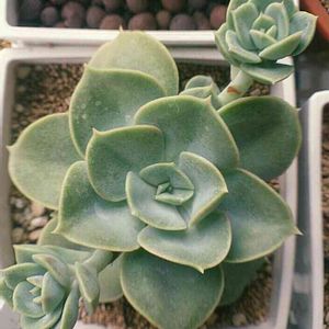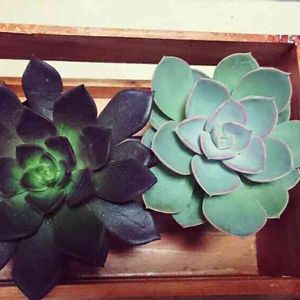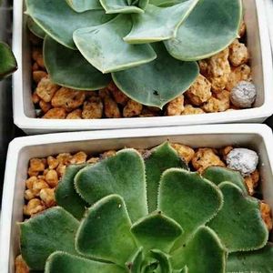 今日買った子達です ・:*+.\(( °ω° ))/.:+ おっきい七福神さん、 グリーンパールさん、 姫属(?)さん、 藍染錦(?)さん、です! グリーンパール超綺麗😍 七福神はモリモリで大きいし! 期末頑張ってよかったです笑