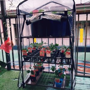 おはようございます😊 今日は大阪はあいにくの雨模様です🤨 雨よけの為にビニール温室に入れました。 一番上は定植して1週間が経ち、ぼちぼち根っこの活着が始まって来た感じです🤔 次の段ですが、左側は昨日夜ホームセンターに行って初めて見た苗が置いてあったので、名前が良かったので状態の良い4株お持ち帰りしました。 下の段は定植前の株です😅 というわけで我が家は25株の苗を育てていきます🙋 でも、ホームセンターに行って良い苗をみたらついつい購入しちゃいますね。 すべて1鉢植えで行います。