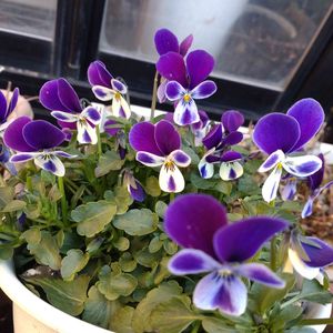 ビオラ ブルーラビット イエローリップ♡ いつも5輪くらいのお花が途切れずに咲いてくれています💜 小さいのに元気をくれます💕 ありがとう🥰 今日は風が強くて寒そうです〰️