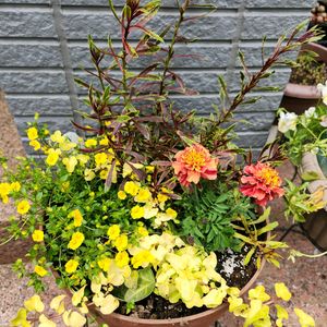 季節の寄せ植え 『マリーゴールド』 『メカルドニア ゴールドダスト』 『ガウラ パピヨンルージュバリエガータ』 『ヘデラ ジェイク』 素敵な色合いのマリーゴールドを見つけました。 マリーゴールドを主役に他の子達を選んだと言ってもいいくらいなんだけど、 肝心の主役がこじんまりしていて何だかなぁ( ̄▽ ̄;)
