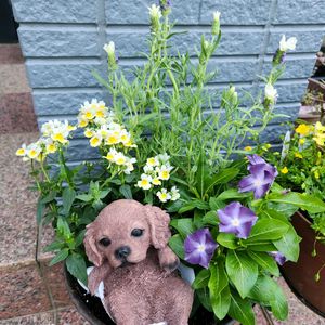 季節の寄せ植え 『ニチニチソウ キノシラベ』 『ネメシア レモンスカッシュ』 『ラベンダー カスティリャーノ ホワイト』 & ティーカップわんちゃん ほぼ毎年と言っていい程 この色合いのニチニチソウをお迎えしちゃう私(笑) 今回は3種植えでやってみました。 本当はもう1種プラスして植えるつもりでしたが、なかなか気に入った苗が見つからず、最終的に毎度お決まりのオブジェをドォーン🤣 まぁ私的には満足な出来になったと思います( *¯ ꒳¯*)𓈒 𓂂 ♪
