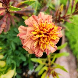 『マリーゴールド』 先日寄せ植えでも投稿しましたが、やっぱりこの素敵な色合いをお見せしたく 新たに投稿しました。 どうでしょうか? 明るい黄色やオレンジもいいけど、ガウラに合わせるならピッタリの色合いだと私的には思ってます( *´꒳`*) 未だ2輪しか咲いてない小さな苗ですが、生長すれば間違いなく目立つ存在になるっ( •̀ᴗ•́ )و …はず(笑)