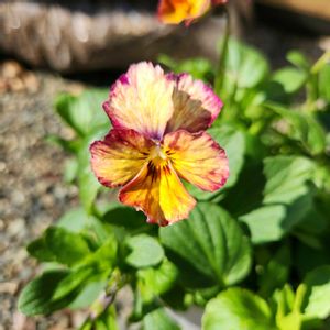 パンジー 『きもの』② たまたま行った近所のお花屋さんで偶然見つけました。 そのお花屋さんに売られてるほとんどのパンビオちゃん達は毎年見かける品種の子達ばかりでしたので、この子をみつけた時は驚きを隠せませんでした。 しかも、私が先日お迎えしたきものちゃんより半額くらいの手頃なお値段で売られてたのにも驚いた ( Д ) ⊙ ⊙ 少し子株でしたが迷わずゲット( *˙ω˙*)و グッ!
