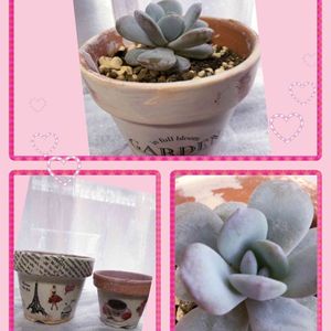 ✨ラウイ✨ 白くてプクプクで可愛いくて一目惚れで二和園さんにて購入❣️ 始めてのリメ鉢作成して植え替え☺️ みどりのまとめで*hanaizumi*さんの参考に😃 とても分かりやすくて👍👍🤗