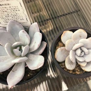 おはようございます😃 今日のpicは、『白と黒』 白いラウイと、黒(茶色)いブラウンローズ✨ 同じエケベリアですが、こんなに対照的😳 でも、どっちも綺麗💕💕 万博ロハスフェスタに持って行きますね〜🖐 11月3〜5日.10〜12日 ロハスフェスタ万博 ブース番号 B01 今回も、『あなたも恥ずかしがらずに名乗ってプレゼントゲット🎁』キャンペーンやってます🖐 腐れ神エプロンして、お待ちしておりま〜す🙇♀️