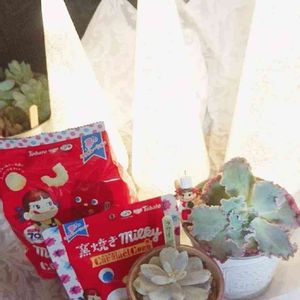 🍬『ペコちゃん祭り』🍭 に参加させて頂きます(๑><๑)۶ またまたギリギリ💦 暗くて多肉ちゃんの可愛さが伝わるかな(´Д`;ก) 真っ白粉まみれのラウイ♡ 晴れの日に📸リベンジしよう🌞♪.•*¨*•.¸¸♬*゚