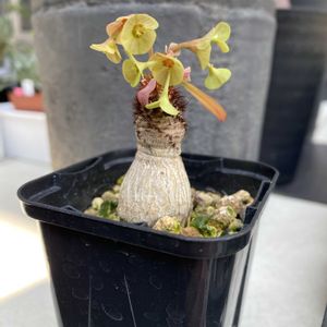 まだまだ植欲止まりませんよ〜😁 ユーフォルビア ラメナ 塊根がひょうたん見たいになっている上の方だけ茶色い毛がモサモサっと! また私はユーフォルビアと言ったらくしゃくしゃっとした葉っぱのイメージなんだけどこちら普通! そして花が咲いてる! 以上が決めて✨ 私はまだまだ塊根植物を知らない(ユーフォルビアは知ってるけどラメナは知らないみたいな・・・)、 名前(カタカナ)も覚えられない😅 お値段も高いのか安いのか分からない💦 だからお迎えの決め手はフォルム🤣