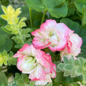 ❁.。ゼラニウム'エンゼルブーケ。.❁ 美しいバラ咲きのゼラニウムです👼💕 ふりふり感がなんとも言えない 可愛らしさ🥺 白にピンクの縁取りも とっても可愛らしいお花です✨ 八重咲きの花を次々と咲かせ、 ボリューム感のある 豪華な雰囲気を楽しめます🌼 春頃から秋頃まで開花します♪ ゼラニウムは一重も可愛く、 たくさんの種類がありますので、 ぜひ見つけた際はお手に取ってみてください☺️🌱 *育て方* 日当たりの良い場所に置いてください☀️ 夏は半日蔭の涼しい場所に置くと長く楽しめます♪ 水やりは土の表面が乾いたらあげてください🌱冬はほとんど生長しないので、お水は控えめにしてください😌