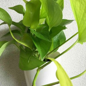ライムポトス♬ お風呂場に しました。 最近は お風呂場に植物置いてなかったのですが 乾燥する秋になったからね✨ お風呂でも 植物あると やっぱ気分的に 違うわ〜〜♬
