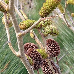 むつ小川原港で撮影 オオバヤシャブシ。 空気中の窒素を有機物に変える窒素固定能力を持っています。植物の成長に欠かせない窒素を多く含むオオバヤシャブシは肥料木として温暖な地域で盛んに栽培され、畑の土壌の改良や荒れた土地の復旧に利用されています。 オオバヤシャブシ (大葉夜叉五倍子) レンズで検索結果引用🙇👍