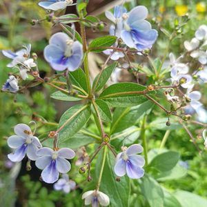 🍀おはようございます🍀 ブルーウィング💙🩵 冬越しの挿し芽株も咲いています♬ ②親株も♪₍๐•ᴗ•๐₎ ③宿根フロックス ジュニオールダンスも 花茎を✂️…後、再び開花中です🎶 ④こぼれ種からのイソトマも 酷暑に負けないでね😊 ⑤ビタミンカラーのイトバハルシャギクは 長く咲き続けています💛