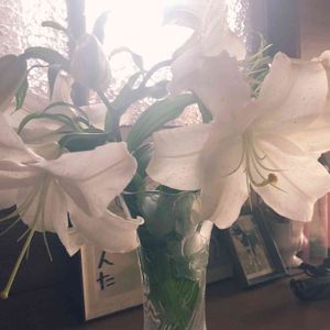 カサブランカ お庭のカサブランカを花瓶に生けました。 次々に蕾が開花してとても芳しい