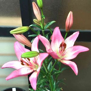 夏に出先で150円で買った苗のオリエンタルリリーが咲きました❤️ 蕾の時間が長くて首が伸びました😆