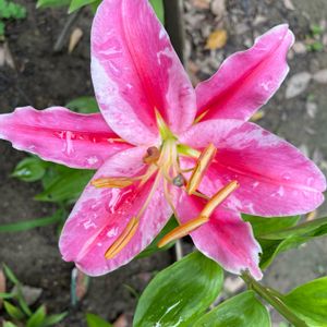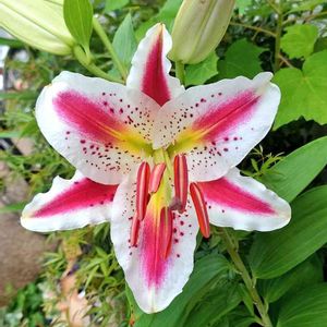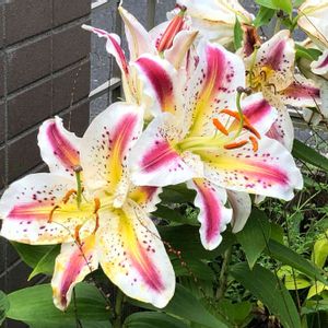 こちらのユリ花友さんに頂いた球根。同じく3年目です。 オリエンタルリリー 昨夜雨が降りそうと玄関前に避難 パラリとしか降らず 今週は雨が降るとか〜☔ 畑にしみる位で🙏