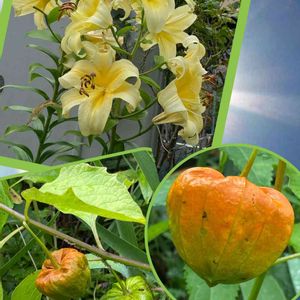おはようございます🎶 今日の花ホウズキ💚🧡💚 満開の💛オリエンタルリリー💛